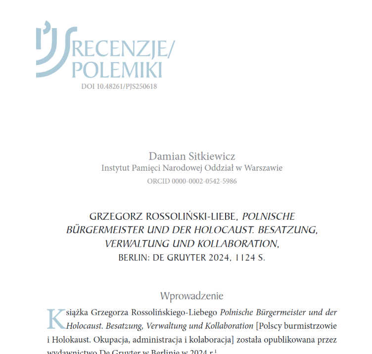 Chodzi o książkę: Grzegorza Rossoliński-Liebe "Polnische Bürgermeister und der Holocaust