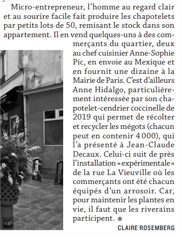 Il a inventé un truc, le "chapotelet". Les pots de fleurs colorisés à poser sur les potelets à 150 balles pièce qui ont colonisé nos rues.