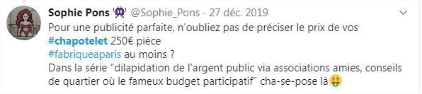 Fin 2019, la mairie du 18e a installé un panneau promotionnel à la gloire des Chapotelets à la place d'un banc public, juste à côté de son fameux chiotte ascenseur à 200 000 balles.