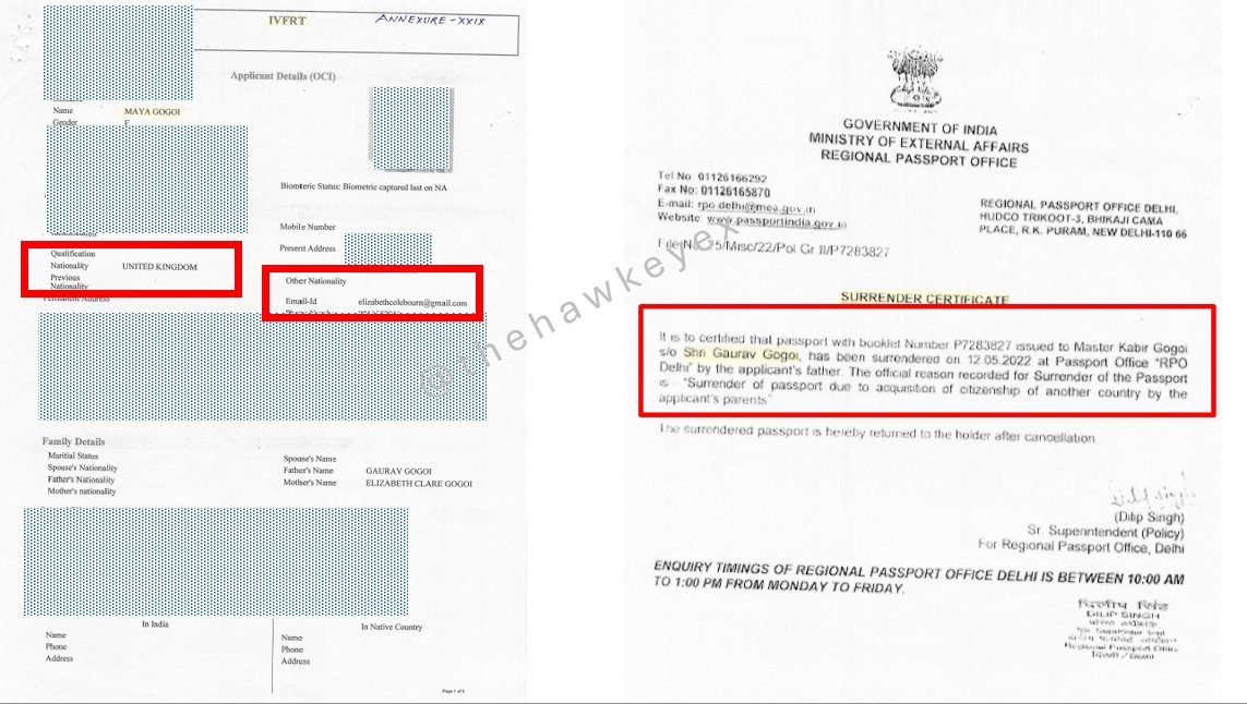 Start with; the Gogoi couple has two children. Shockingly, both are NOT Indian citizen. In fact, Gogoi surrendered Indian passport of his son, citing "acquistion of another country passport".