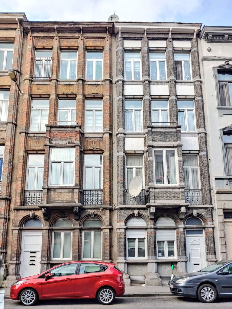 1905 rental flats, Schaerbeek. Inside were a mix of 3 pièces en enfilade for the petite bourgeoisie and bedsitters for workers behind. Early tenants included a language teacher, a lieutenant and a dramatic artist. The workers names are not recorded. #Brussels