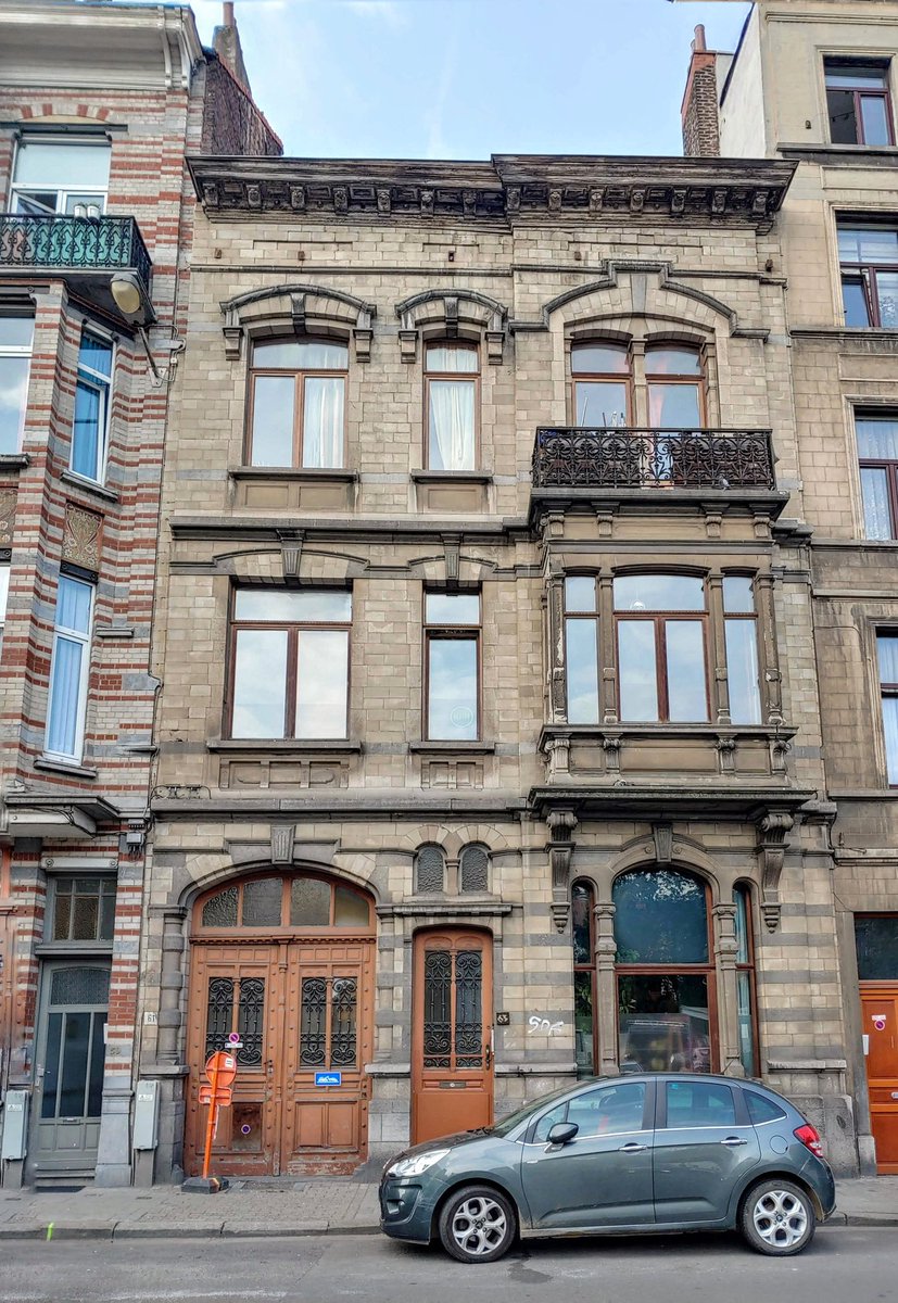 This part of the Schaerbeek-St Josse borderland was and is one of mixed fortunes, heavily influenced by the nearby railway built along the Maelbeek valley. Next to the flats above, the same architect built flats in 1907 and next to them, in the same year, a carpenters's mansion.
