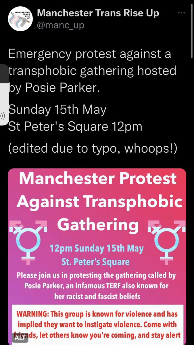 The group of far-left radicals gathered in Manchester to oppose trans-critical feminist Kellie-Jay Keen (@StandingforXX).