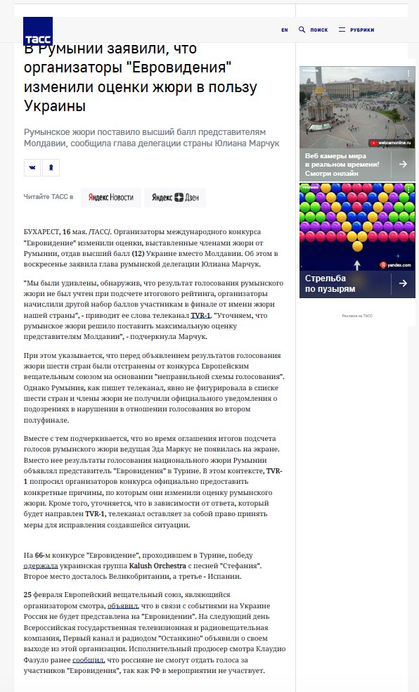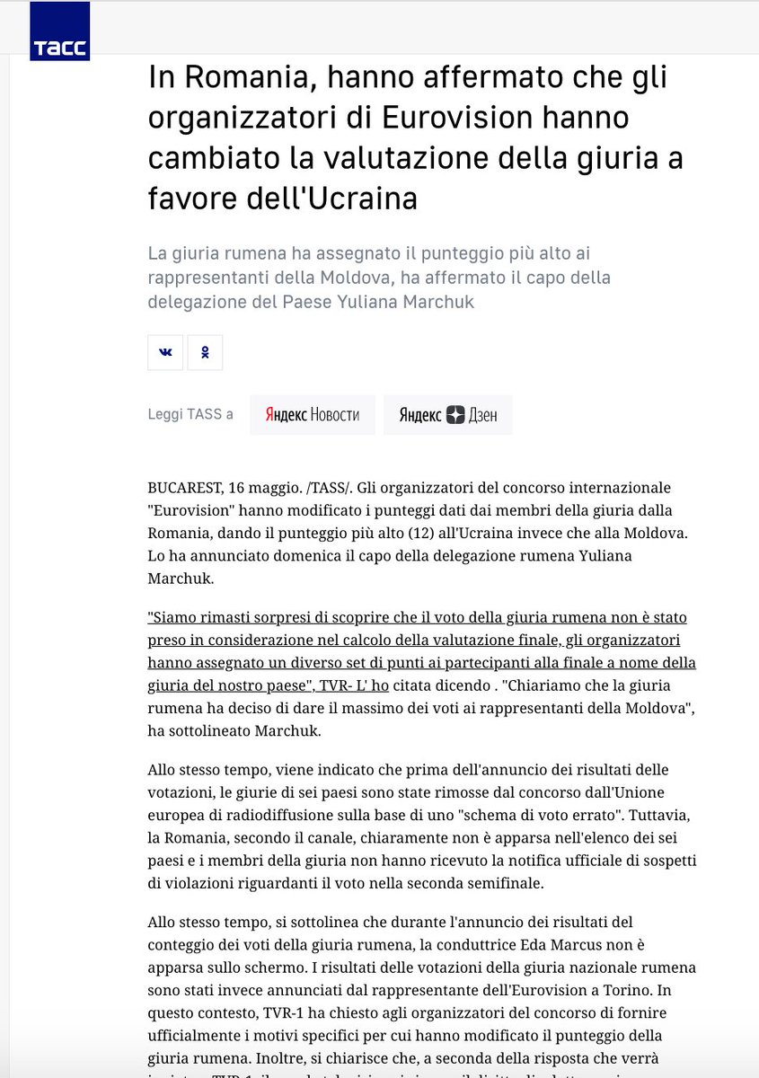 Il caso viene prontamente ripreso e rilanciato prima dalla TASS e poi dai filorussi e filo-#Putin sui social, nel tentativo di screditare la kermesse e la vittoria dell'#Ucraina. Ma cosa la TASS e i putinisti non dicono?
