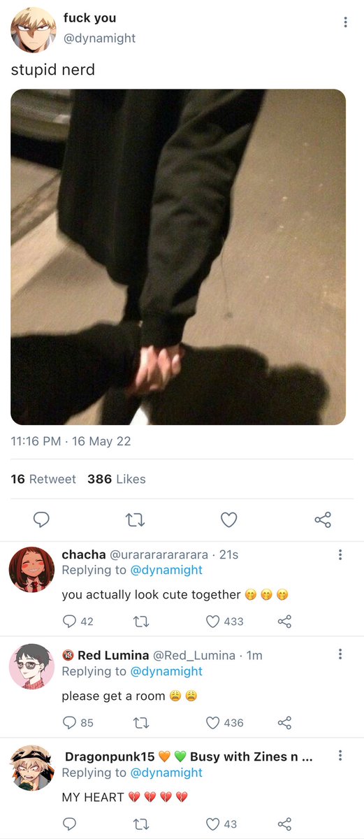 sorry, the 1 part was small but we will see more of them struggling together π₯° ESPECIALLY gay panic of none other than Bakugou Katsuki himself!