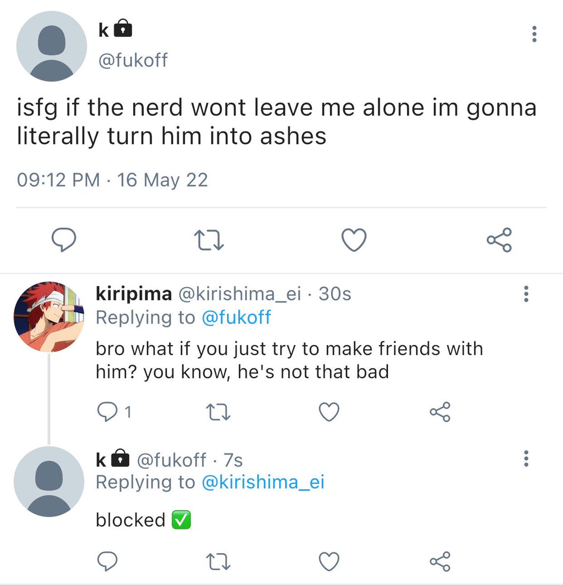 im saying this not to bring the justice or whatever the fuk this bird app thrives for but to say that whoever attack bkdk or krbk in the future because of some stupid ship discourses and hate towards any of them can suck my dβ