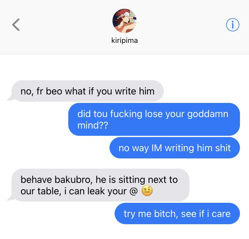 so katsuki takes that as a challenge and says "alright, shitty toothpick, i'll train you."