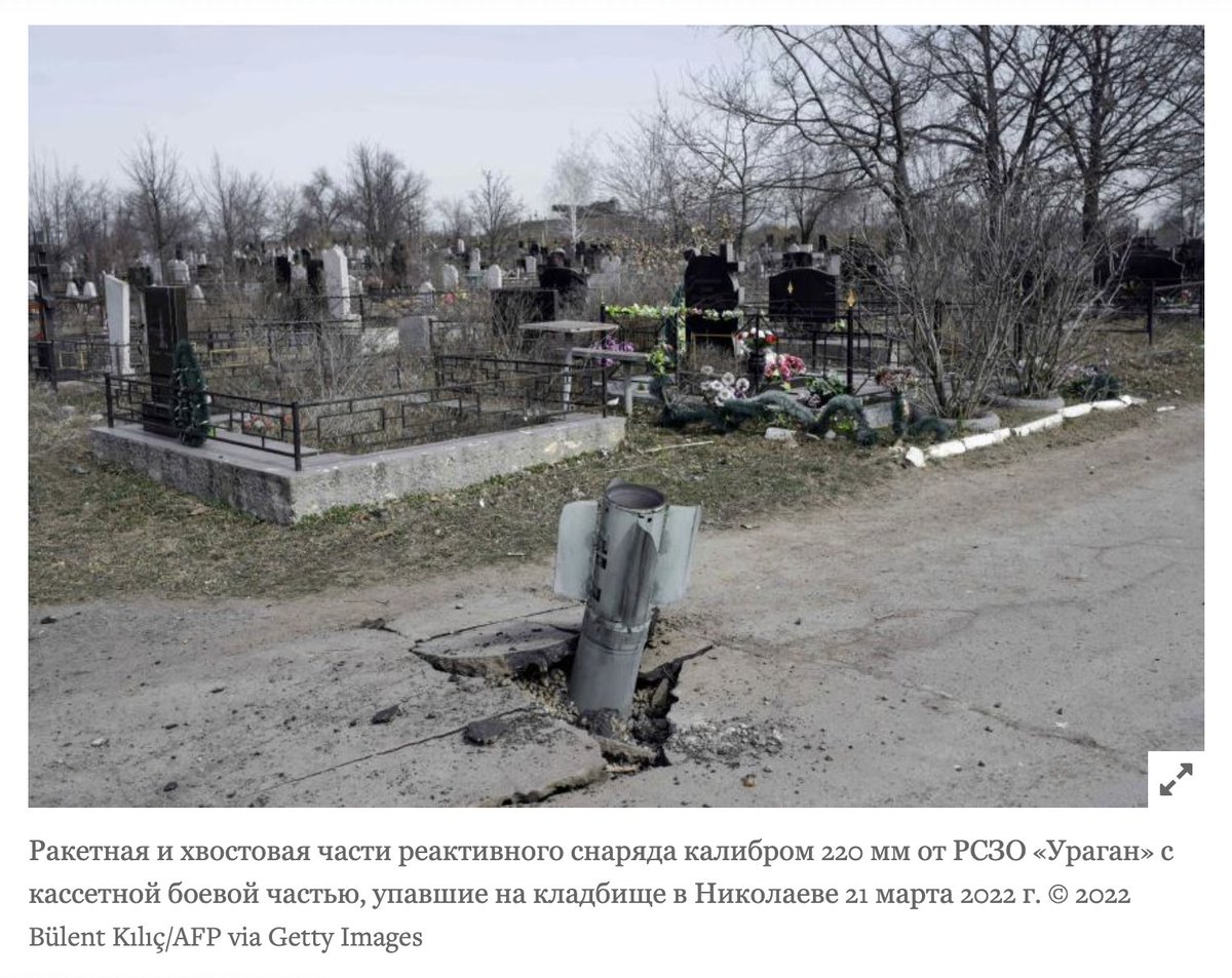 Human Rights Watch задокументировала неоднократное применение российскими военными кассетных боеприпасов при обстреле Чернигова, Харькова, Николаева и Угледара, в результате чего погибли сотни мирных жителей и было повреждено множество жилых домов, больниц и школ. 🧵