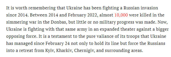 First this argument is plainly wrong. #Ukraine is far more prepared today than it was in 2014. The deadlock, after the initial phase of fighting. was also due to years of diplomatic efforts, with the implicit aim of avoiding exactly what we saw on February 24.