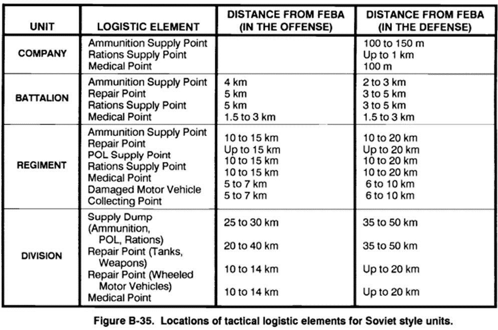 4/ The distance to the frontline BTGs to the noted supply points slightly exceeds rough Soviet era norms for the division level. Couldn't find norms for army level, but suspect they are in the same ballpark.