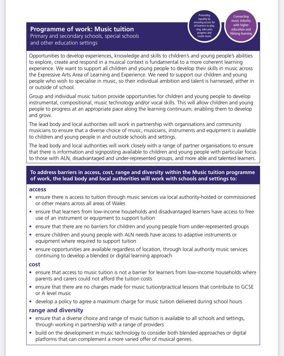“ensure that access to music tuition is not a barrier for learners from low‐income households where