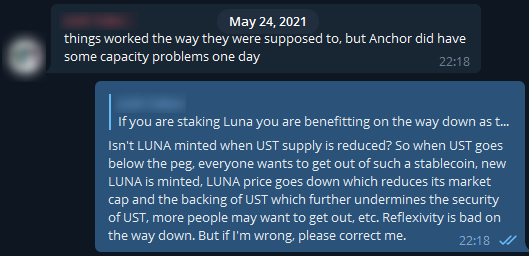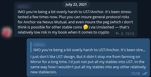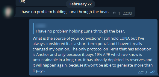 @stablekwon@LFG_org@mirror_protocol I expressed my lack of confidence in $UST and $LUNA in various private groups I'm in, e.g. @DeFiOmega: