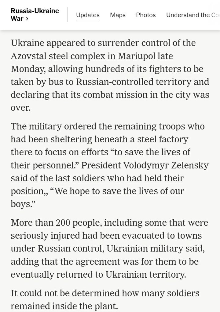 Zelensky just surrendered the strategically important port city Mariupol after besieged Ukrainian troops there had complained that they had been ignored and abandoned except for propaganda purposes. This officially confirms that.