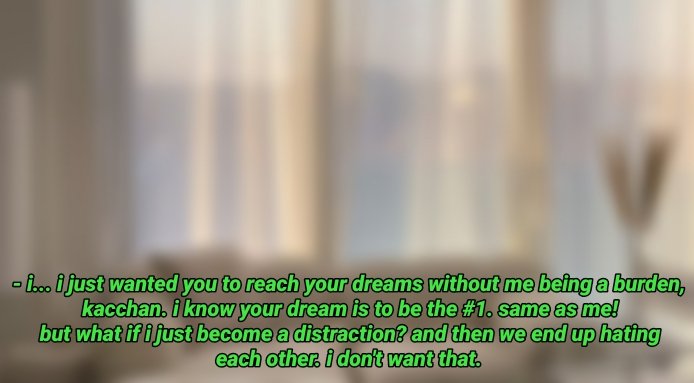 there's tiniest bit of desperation that breaks out in katsuki's eyes, like he doesnt want to let go of izuku but he thinks he's undeserving of izuku's attention at all.