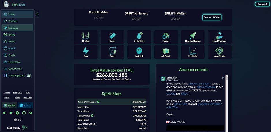 Spiritswap was the first “incentivized” Dex on the Fantom Opera Chain. It is based on the Uni swap AMM model and is a partial fork of PancakeSwap. Like other incentivized DEX’s you can provide an LP to a pool and earn the native token, in this case, the token is $SPIRIT