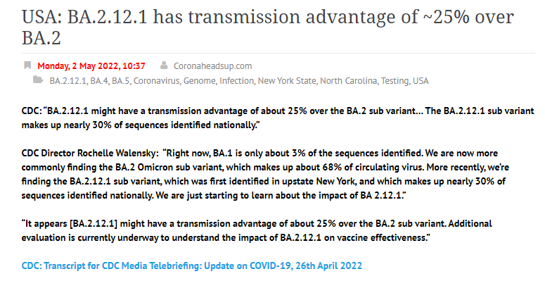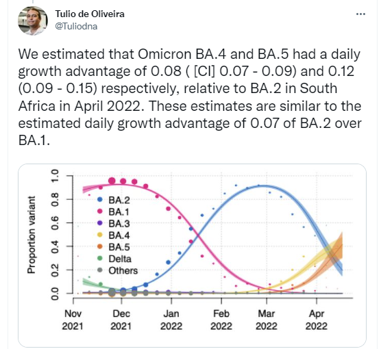 BA.4/5 variants are growing fast here too (as is BA.2.12.2, causing a wave in US) but there is so little PCR testing happening now. This is the first new variant takeover where we are flying so blind.