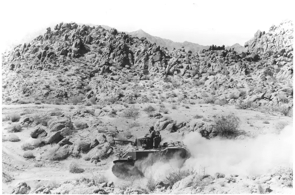 “The large size of the training area made it possible for the infantry and armor divisions at each camp to make 1-3 week long excursions into the desert using live ordnance (from small arms to heavy artillery and tank rounds) without the risk of running into each other.”