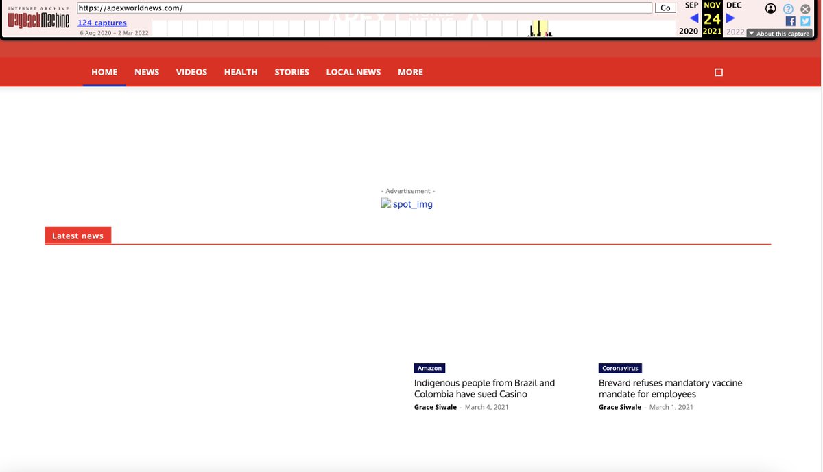 To the Wayback! Site looks junky, serves ads. And much of the content is authored by a "Grace Siwale." There is a person on Twitter with this name (not linking) and she shares a lot of Apex World News links. She's also deeply religious and a fan of one particular preacher.