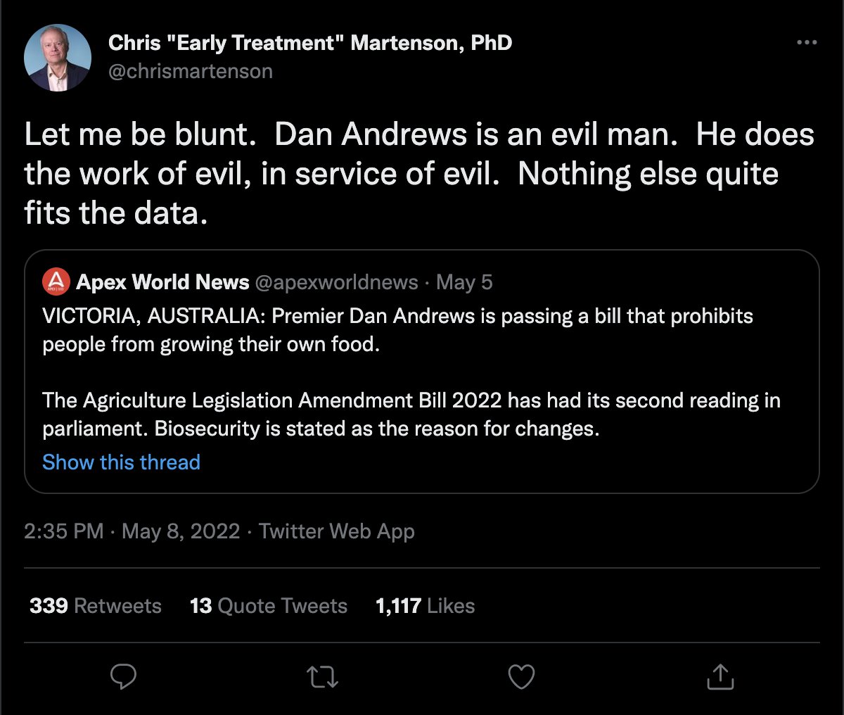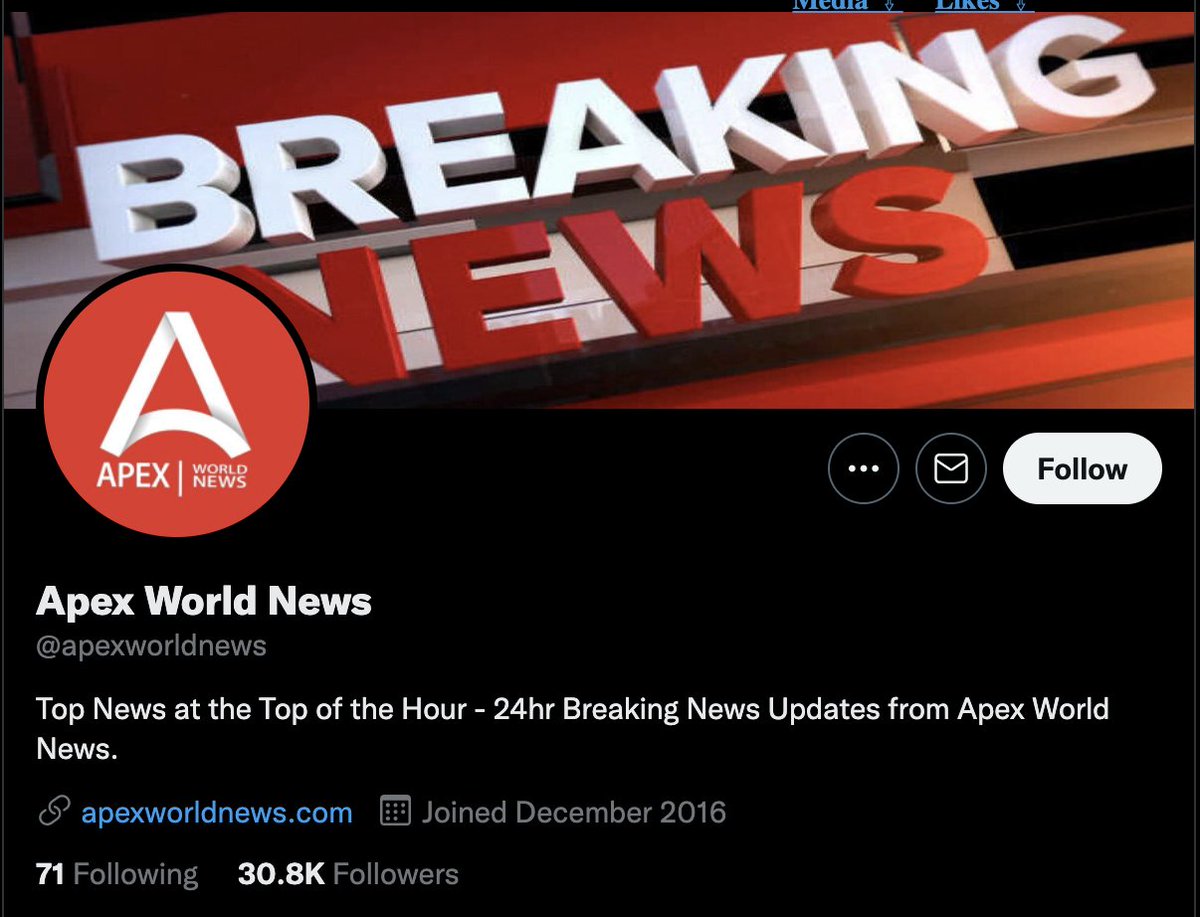 So who is @apexworldnews? The account is a typical "breaking news" type of misinfo account. No ownership listed, spammy and unverified content. It does list a website. But ... expired.