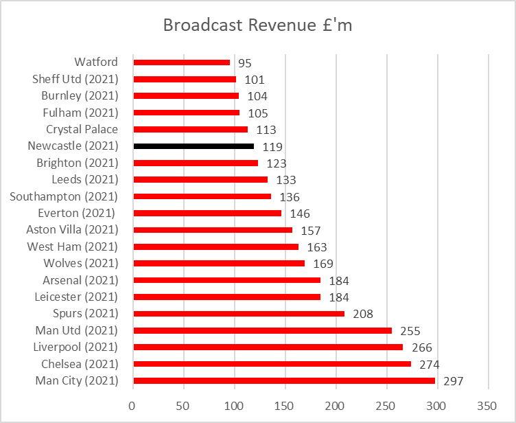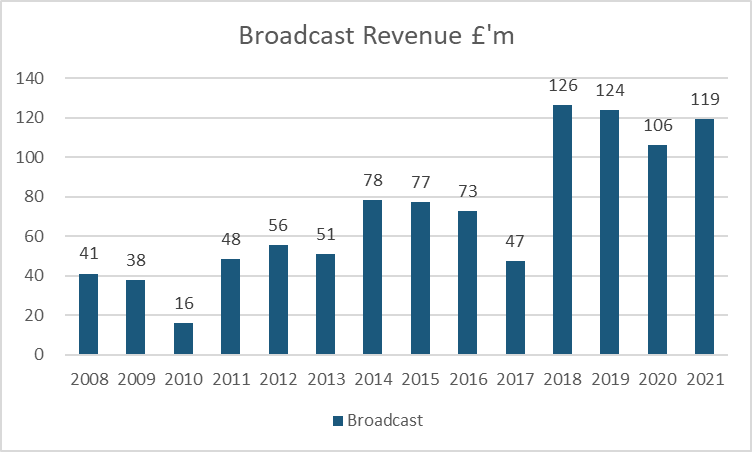 Broadcast revenue covers 38 matches, unlike many other clubs who had 44 in their 2020/21 accounts as they had 12 rather than 11 months in their accounting period.