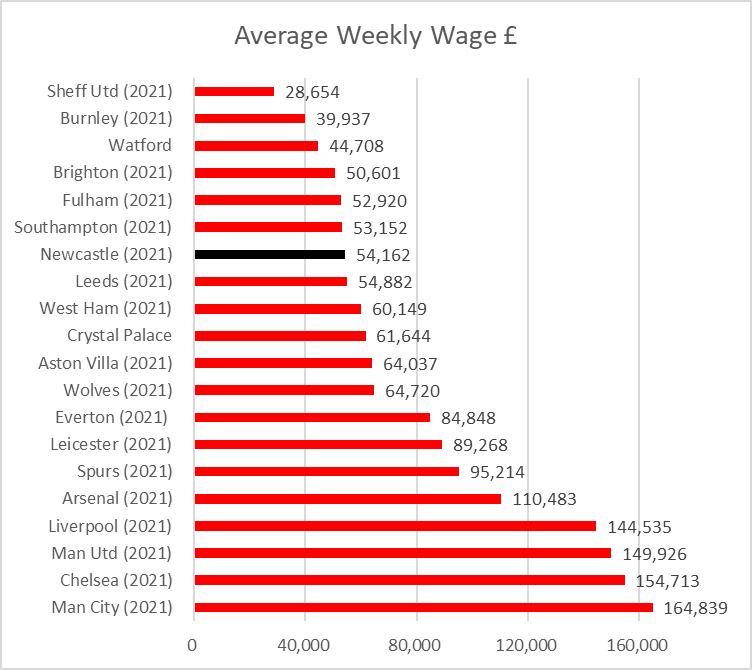 Wages on face of things down but 2021 figures cover 11 months compared to 13, so weekly wage actually increased from £52k to £54k a week. #NUFC