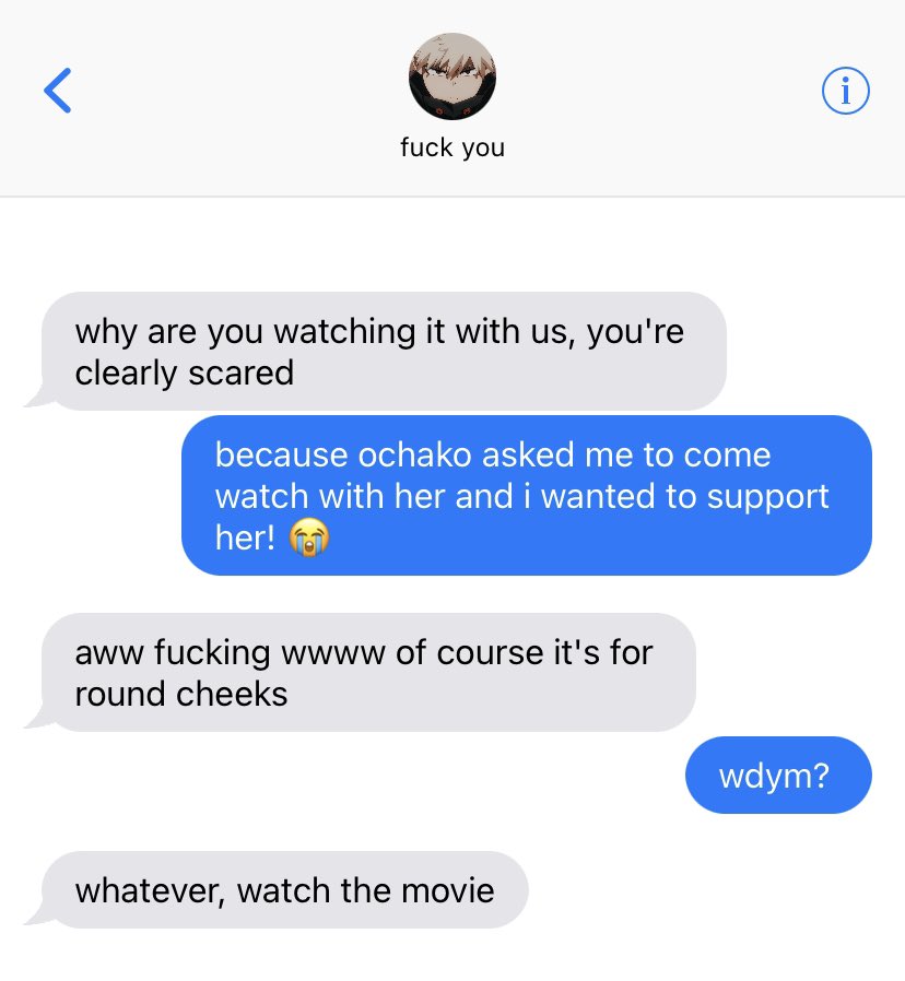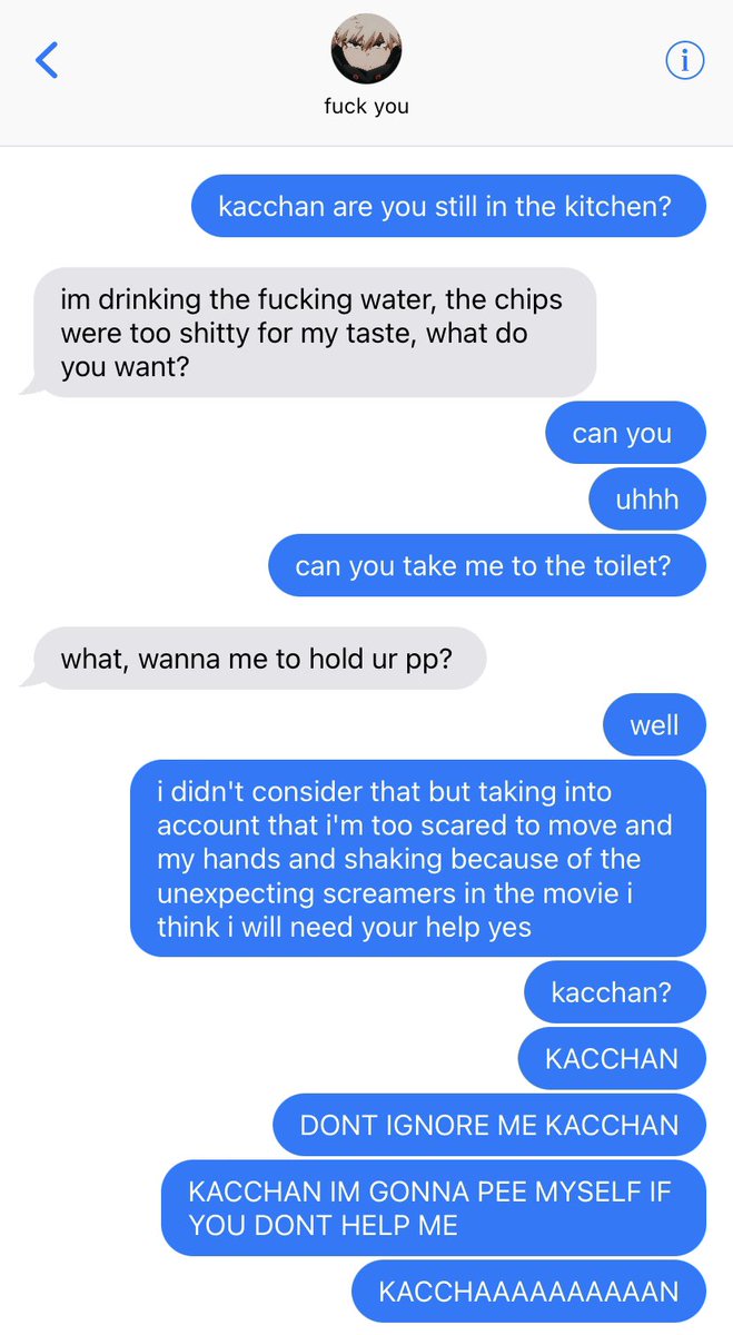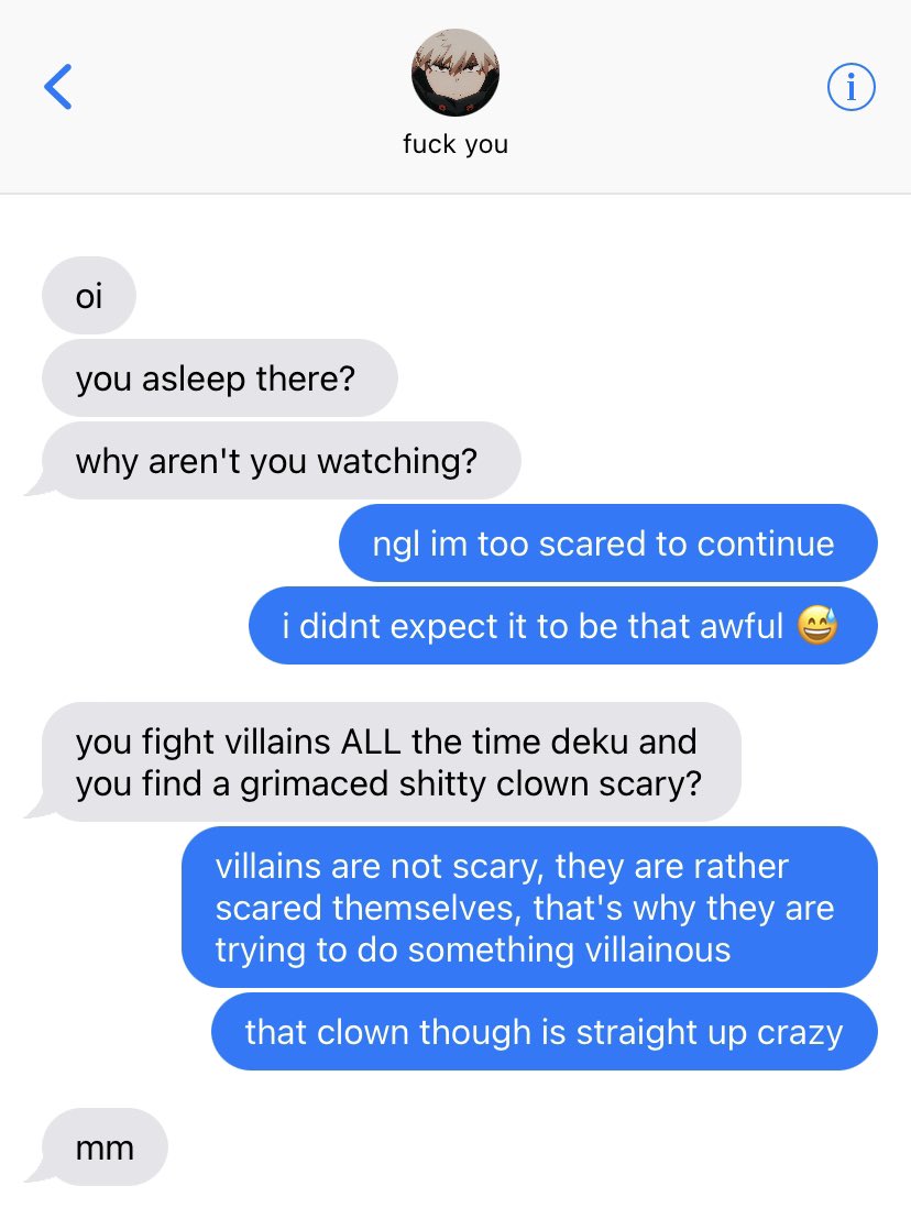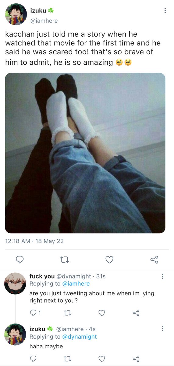 a small socmed #bkdk#bakudeku au where Class A decided to watch a horror movie and Izuku is hiding behind his phone