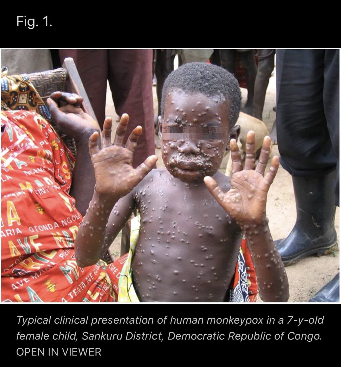This is a child with monkeypox, a cousin of smallpox. I hope the anti-maskers and “natural immunity” crowd take the virus seriously. Whether it’s the 10% CFR Congo strain or 1% CFR West African #monkeypox strain, both no joke.