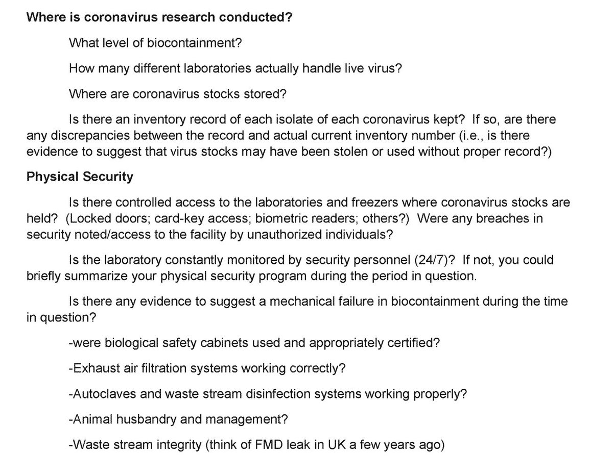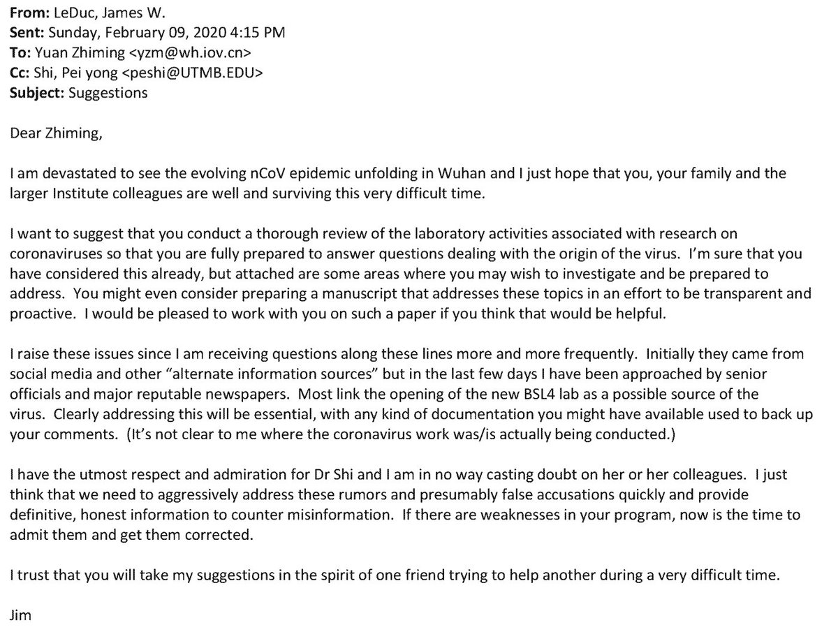The level of biosafety and containment of viruses was a key concern (privately) expressed by top experts on biosafety/virology. See email from James Le Duc, director of the Galveston National Laboratory, which collaborated with and trained WIV staff. usrtk.org/wp-content/upl…