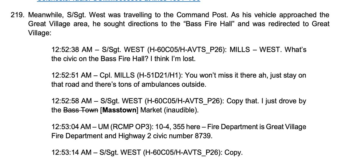 MacLellan asks West about this containment point. West says when he arrived he wasn't aware that the points east of Portapique were not contained for an hour and a half #MCC
