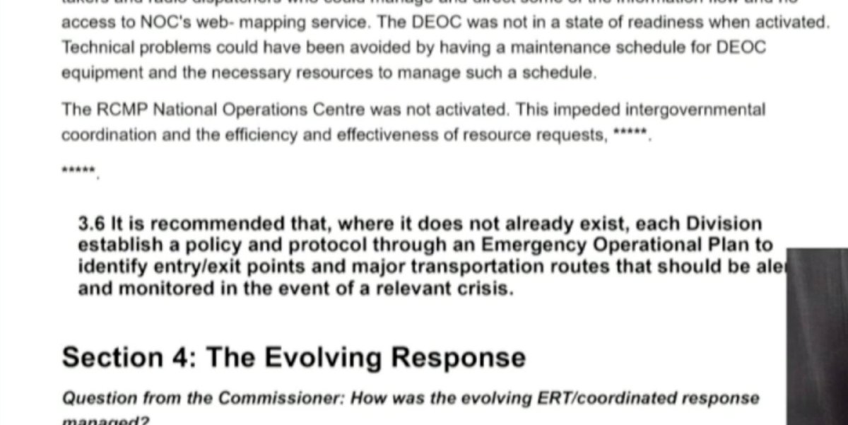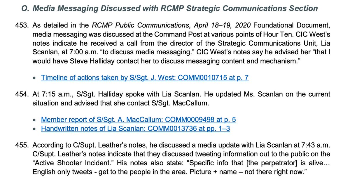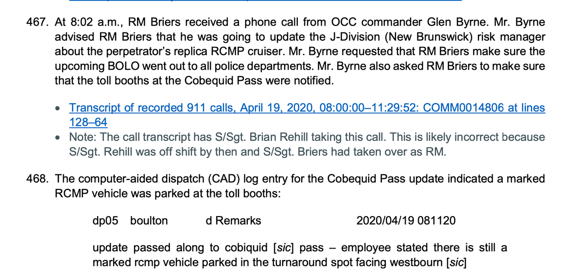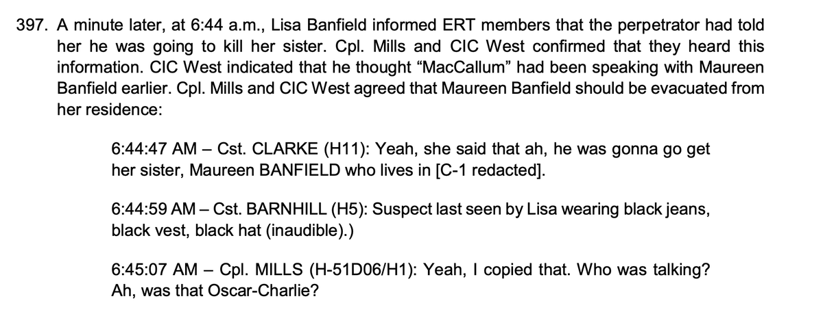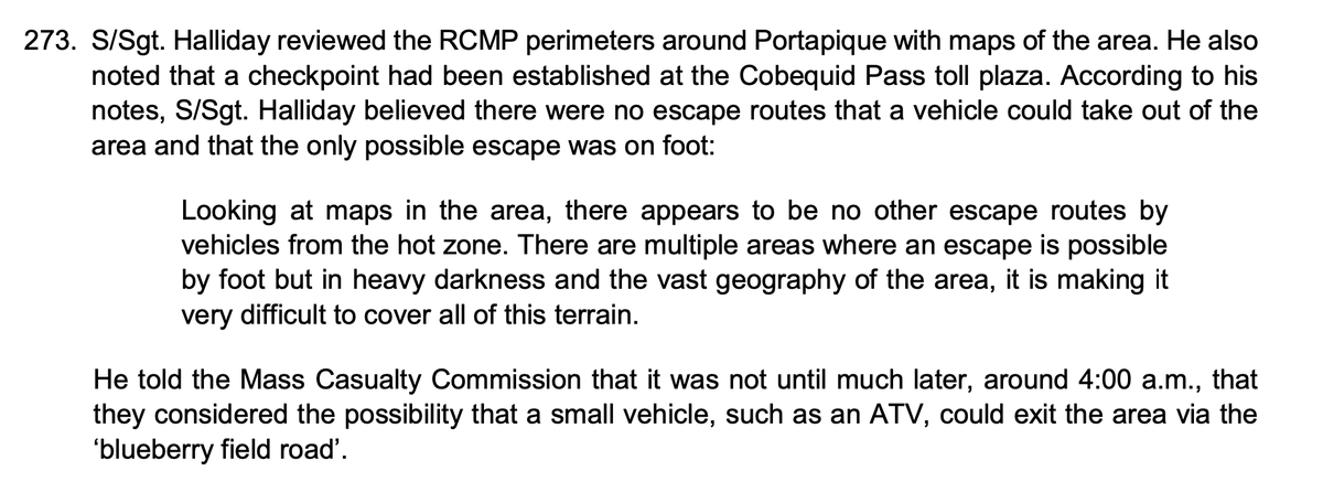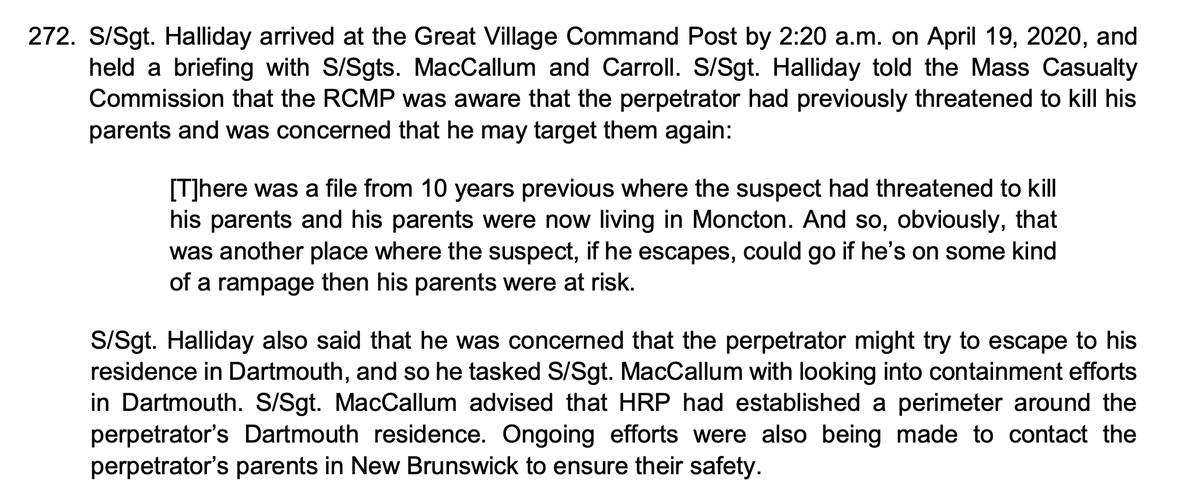 Miller points to this from the report on the Moncton shootings: "It is recommended that... eachDivision establish a policy and protocol ... to identify entry/exit points and major transportation routs that should be alerted and monitored in the event of a relevant crisis" #MCC