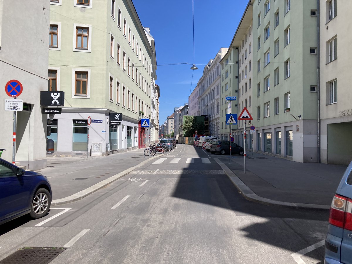 Hier auf dieser breiten Straße ohne Pkw-Abstellplätze endet unsere Radtour mit einem kleinen Gespräch über Politik, Verwaltung und Aktivismus. Danke für deine Zeit, lieber @martin_blum. Der nächste Ausflug geht in den 8. und 9. Bezirk, dann gibt's schlechtere Bilder ;-)