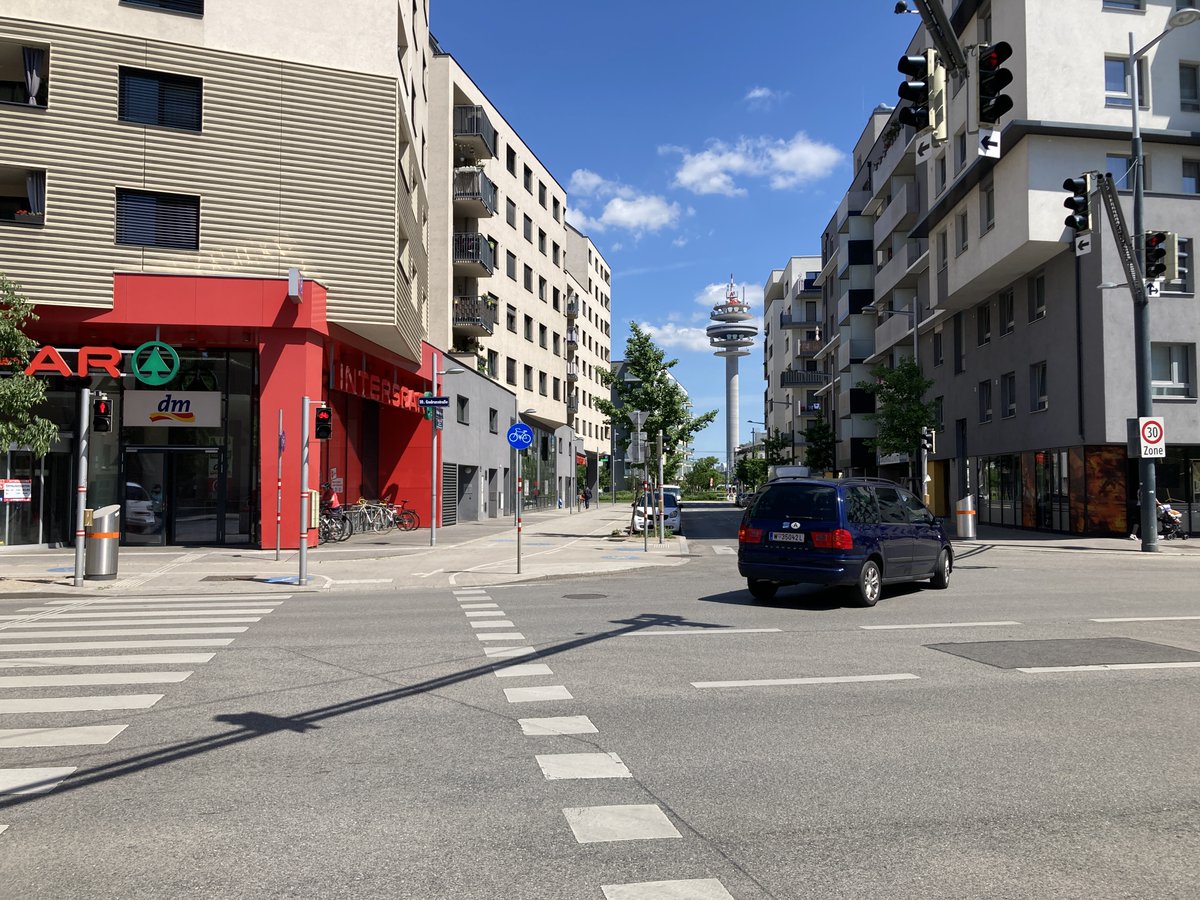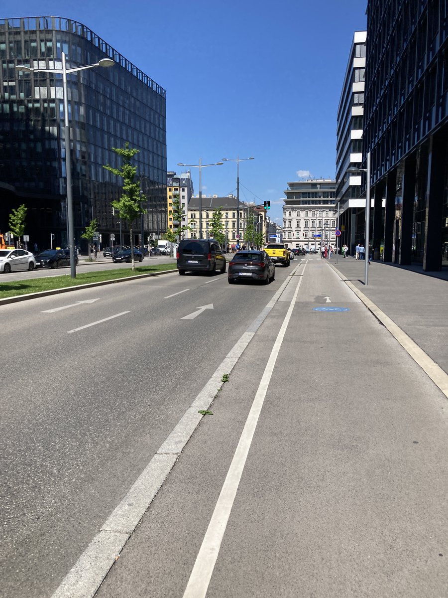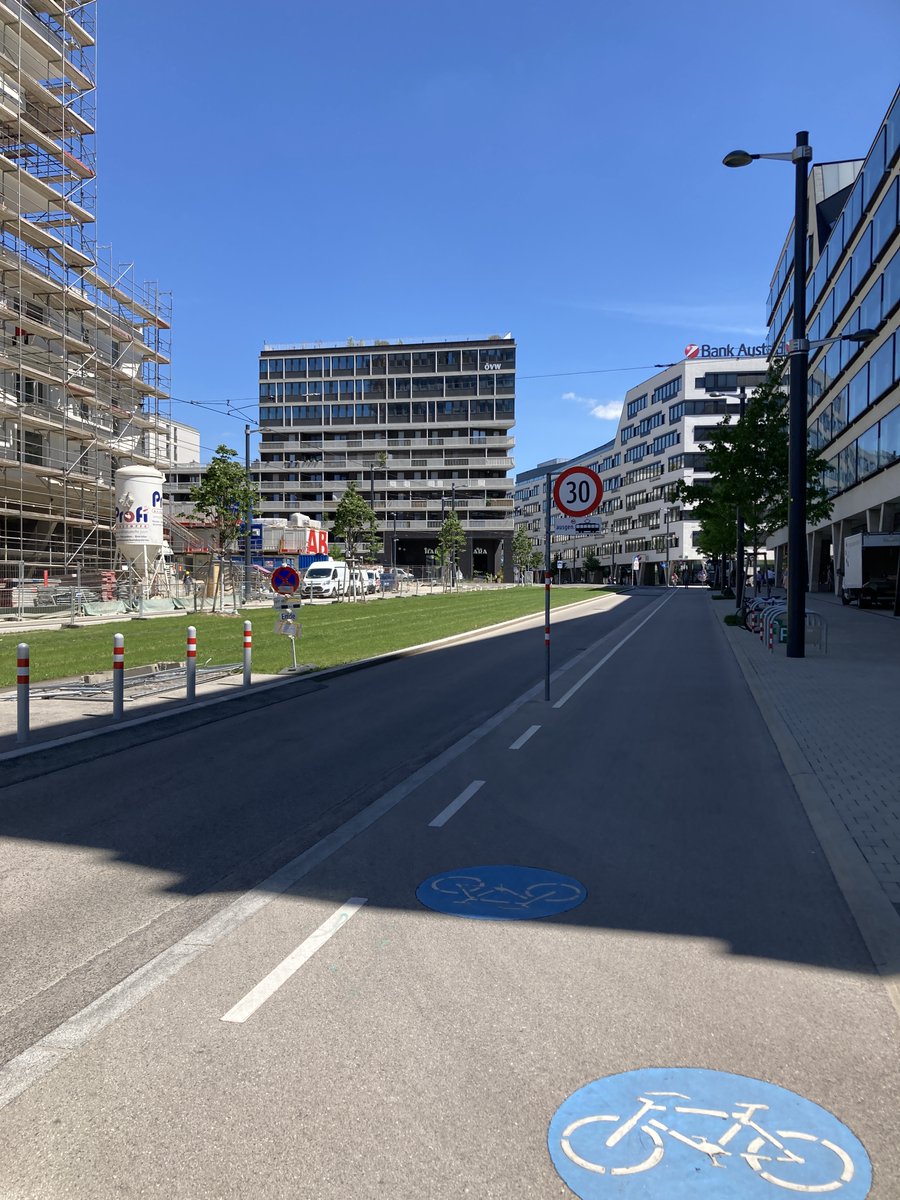 Das fällt mir ja immer wieder auf in der Stadt Wien: Bei Projekten, die ganz neu gemacht werden, wie in Aspern, beim Nordbahnhof und hier im Sonnwendviertel ist das Wissen und die Bereitschaft da fürs Rad zu planen. Wo man aber dem Auto was wegnehmen muss: ✖️✖️✖️
