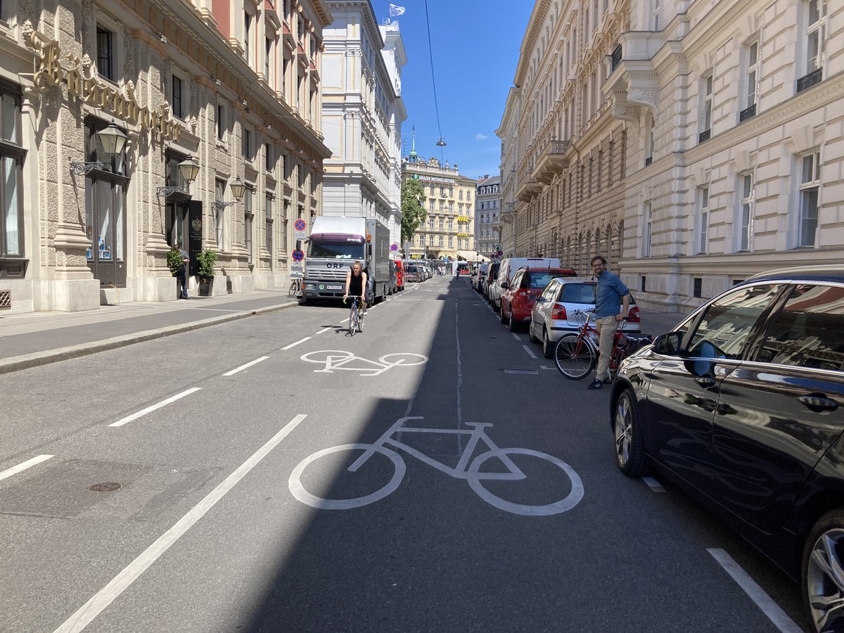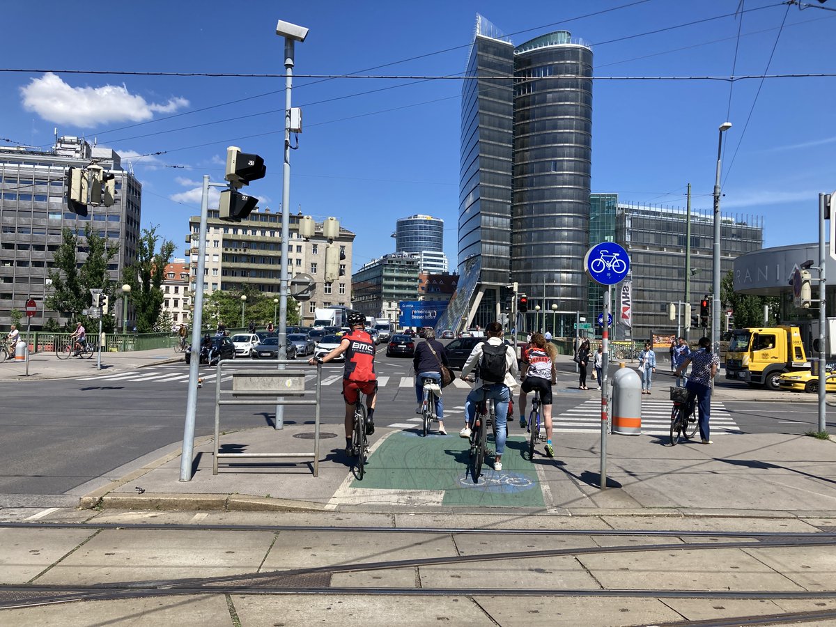Ich war hier in letzter Zeit recht streng mit der Stadt Wien, wenn es um den Radverkehr geht. Viele Leute steigen nicht aufs Rad, weil sie sich hier nicht sicher fühlen und das ist ein Versagen der Politik. Was alles Positives passiert, wollte mir @martin_blum zeigen. 🧵