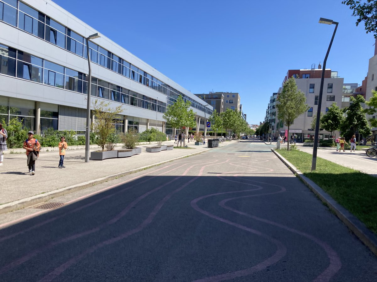 Ab geht's ins Nordbahnviertel, der Weg dorthin ist wieder sehr bequem und hier ist sogar ein ganz kleiner Teil der Bim-Linie begrünt (Auge @_barbara_laa). Hier gilt wieder: Wenn die Stadt Wien Projekte auf der grünen Wiese planen kann, macht sie das tip top.