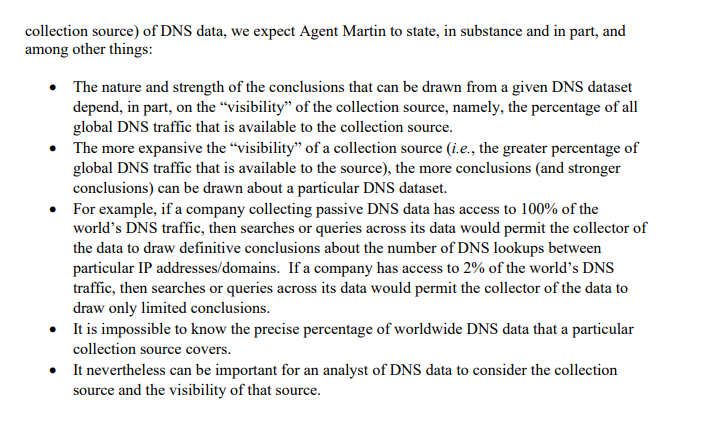 3/ But there is a distinct difference b/w explaining what conclusions CANNOT be drawn from DNS data and calling into question Sussmann's data. Will the court agree though?