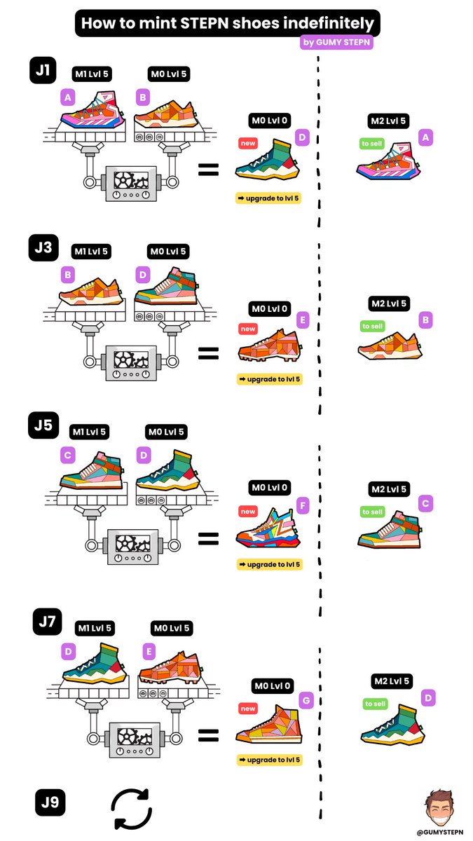 8/ 7. Sell your vintage sneakers you’ve minted with twice (it’ll get more expensive for next mints) 8. Restart the loop but this time with your two new sneakers @GUMYSTEPN recently did a tweet on this topic as well (