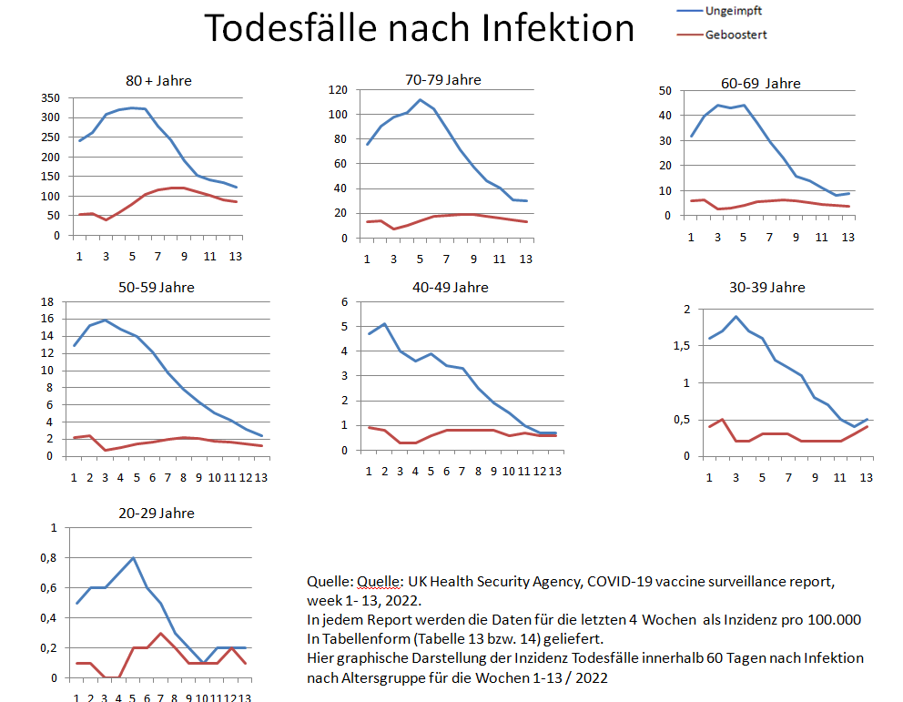 In Großbritannien werden Geboosterte inzwischen fast doppelt so häufig krank wie Ungeimpfte, also eine katastrophal negative Impfeffizienz. Die Booster sind dort schon länger her als in Kontinentaleuropa und verlieren ihre Wirksamkeit.