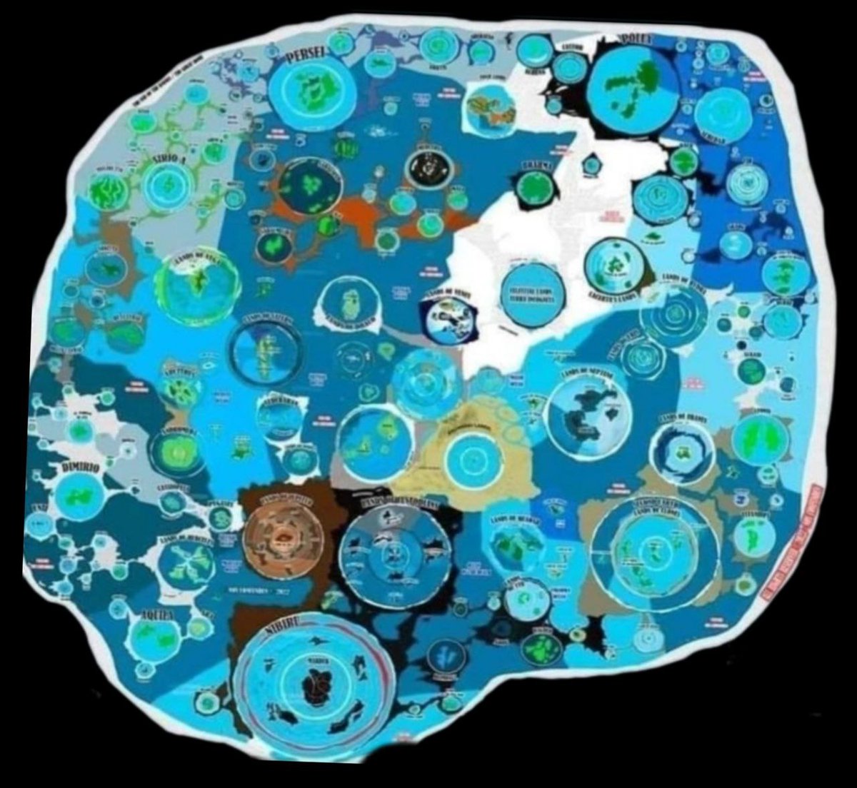 Bu haritaya göre tüm mitlerdeki tanrısal bilinen karakterlerin bile geldikleri gezegenlere bağlantılı ,yeryüzü yerleşim dünyaları -ülkeleri var . Tüm gezegenler de hem yukarıda hem aşağıda ... Bildiğimiz Gezegenlerin isimlerinde dünyalar var haritada! 178 dünya ! ImageImageImageImage