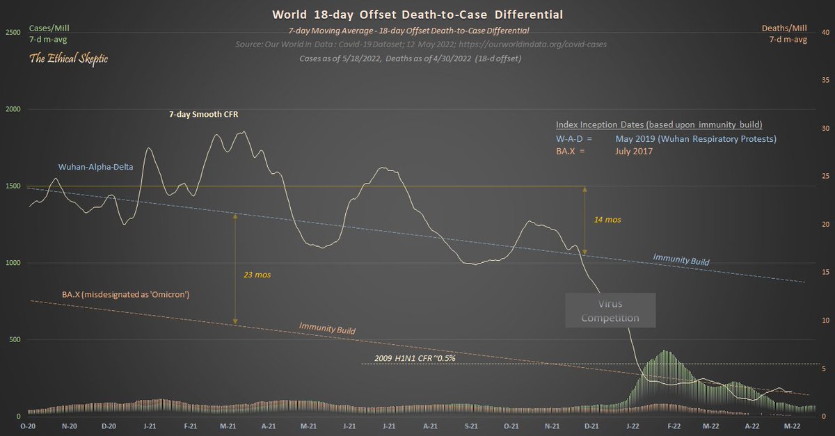 Now let's apply this linearity in immunity-build to a World case/fatality chart using the same axes, measures, & metrics.