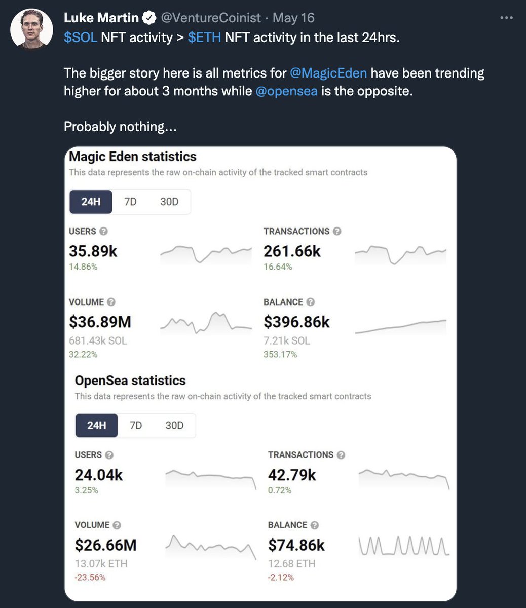 @egsnft@MagicEden 20/ We may cycle back into an ETH NFT bull in the future, but having exposure to SOL and diversifying sure helps getting through times of drought.