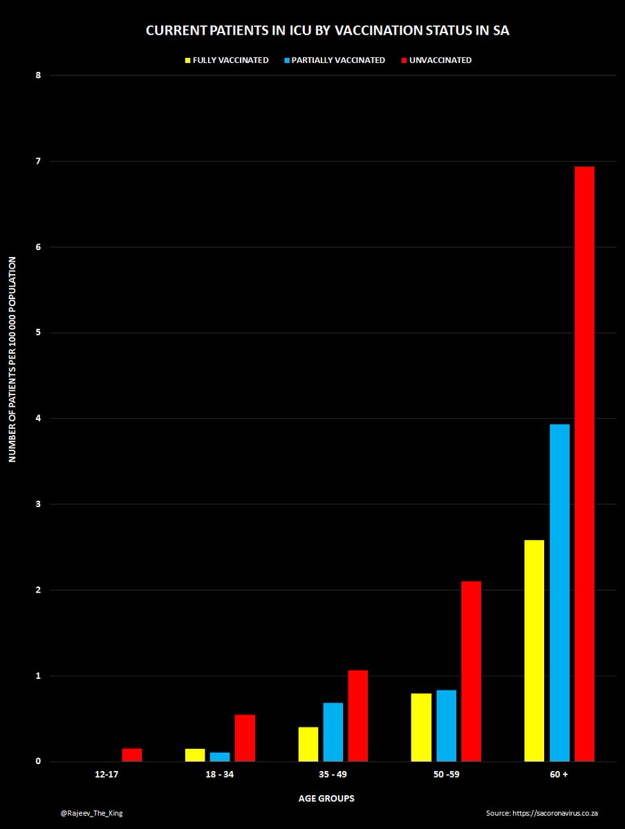 Note that there is only 1 high care ward patient in the 50-59 age group who is partially vaccinated, so you can see the rate for fully vaccinated in this age group is higher.