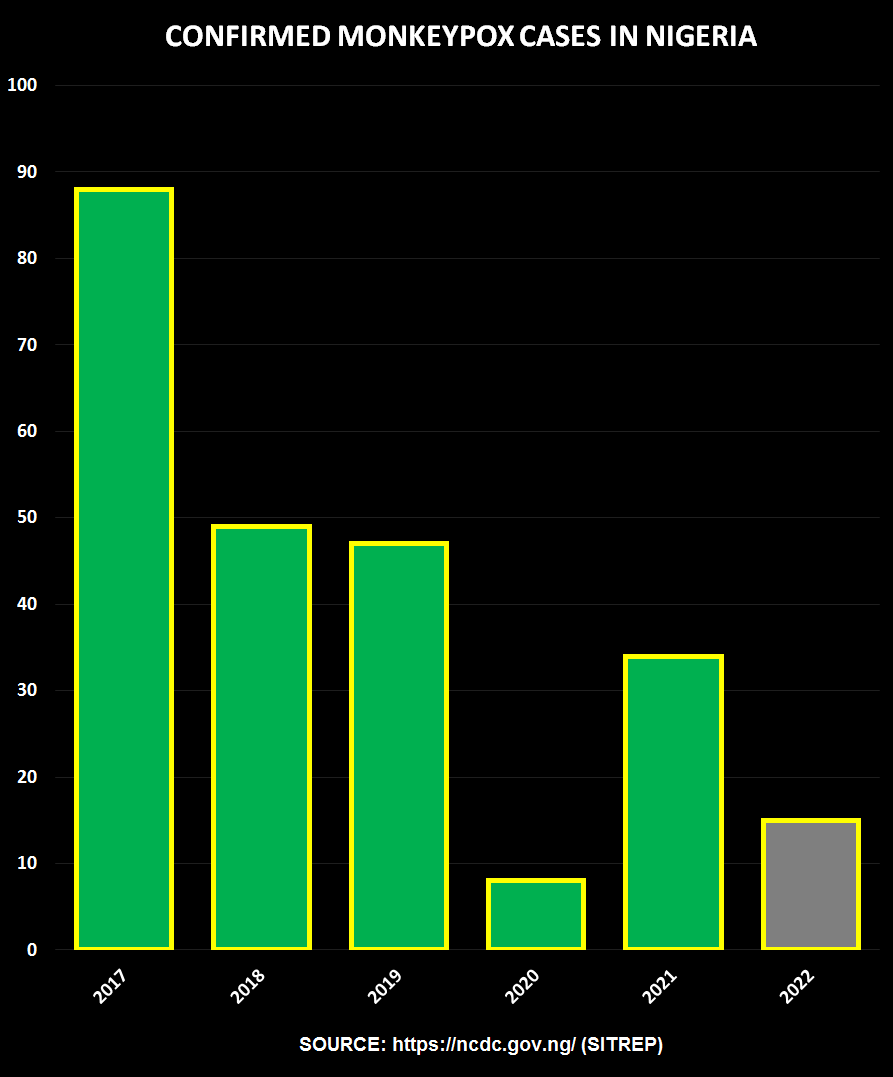 For 2022 alone, up to week 17, DRC has reported 1238 cases with 57 deaths.