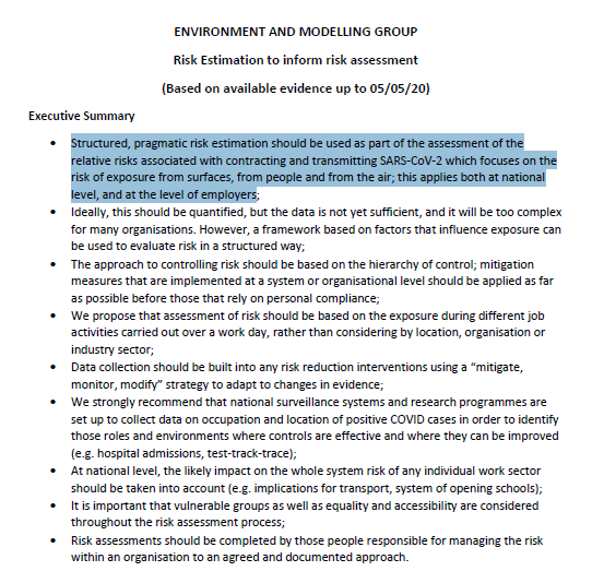 2. In Jan - early Mar 2020, SARS2 was rightly considered airborne, since its brother, SARS1 was airborne too & extensive published data known to NERVTAG members affirmed the aerosol generating capacity of normal physiological activities (coughing, speaking, breathing etc)