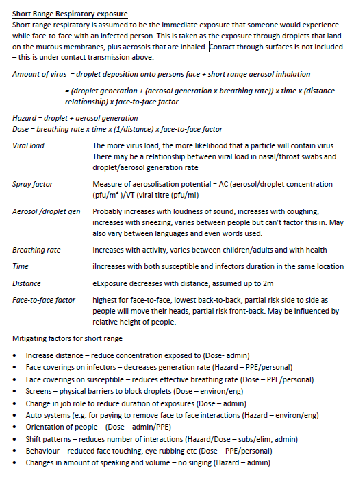 'Short range respiratory...the immediate exposure that someone would experience while face-to-face with an infected person...taken as the exposure through droplets that land on the mucous membranes, plus aerosols that are inhaled.'