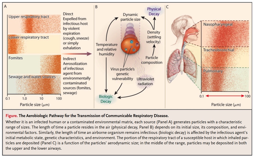 ✅‘Respiratory virus symptoms such as sneezing & coughing result in the generation of virus-containing particles, in a size continuum from 1 to 500 microns [diameter].’