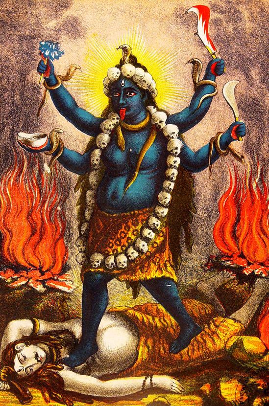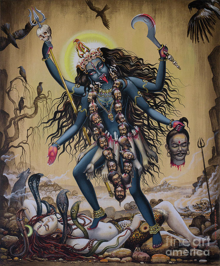 She is the slayer of the demons Chanda and Munda and was named as Chamunda Kali. She defeated Raktabija, who had the ability to produce duplicate of himself by every drop of his blood that reaches the ground. Kali ended him by consuming his and his duplicates’ blood.
