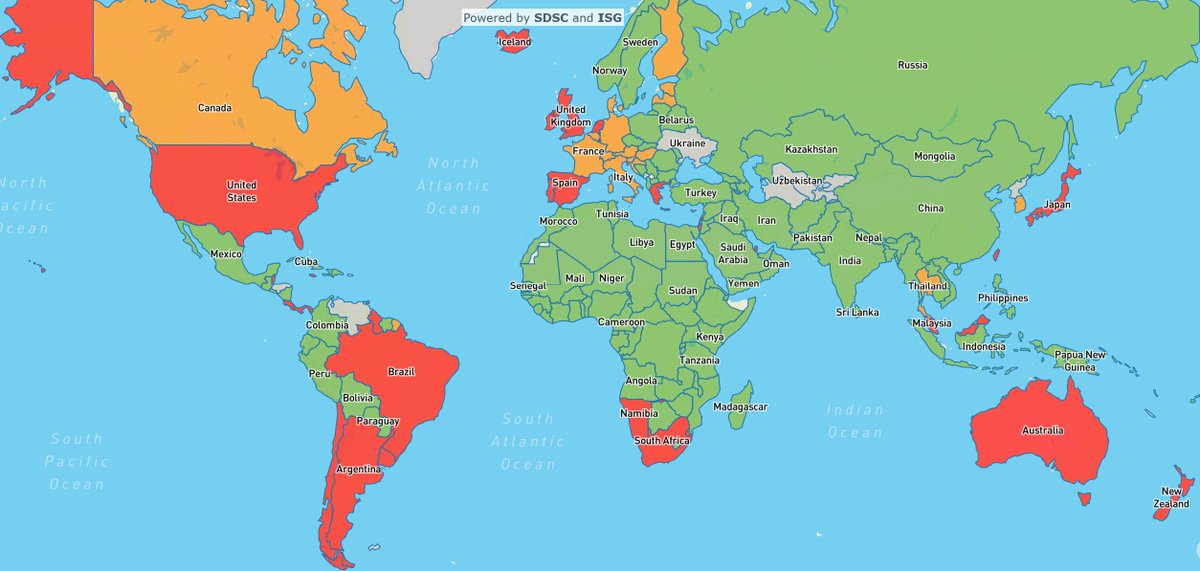 - New wave in the USA=1.10 (78.4%) which are rising, with med mortality. Red in all states.