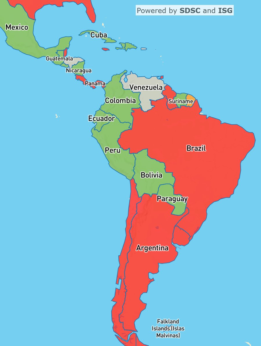 - Surging in Panama (R-eff=1.20); Uruguay=1.35; Argentina=1.30; Jamaica=1.22; Belize=1.34; Chile=1.24;