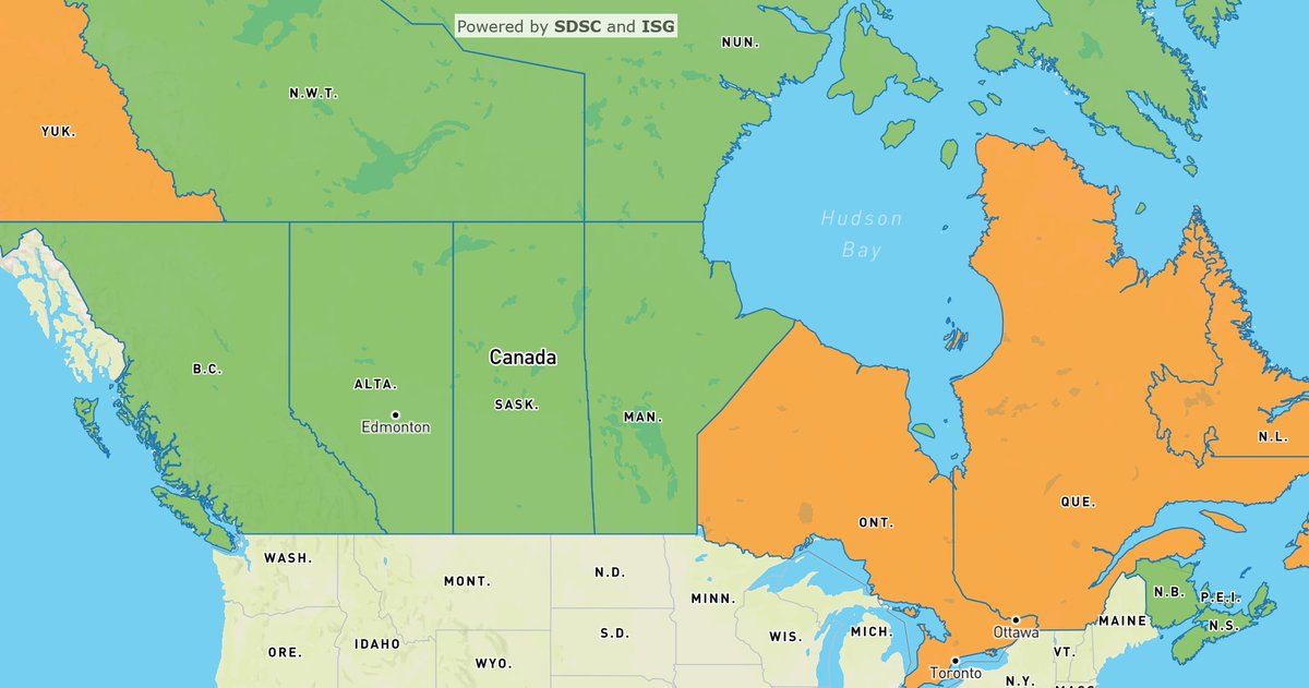 - Canada (R-eff=0.86) is landing towards its #COVID19 safety zone, medium mortality, 87.7% 1 dose. Green in BC; ALB; Sask and MAN; orange in QC; ONT.