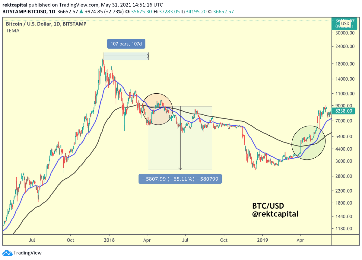 What's interesting about the scenario of a -43% post-Death Cross crash however is that it would result in a $22000 #BTC